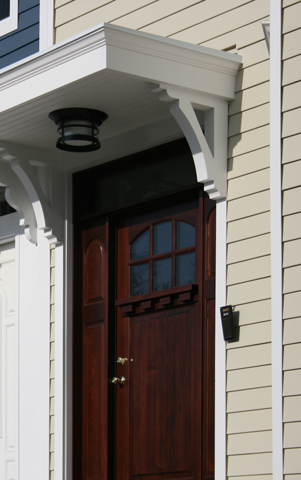 The existing facade was completely removed. New wood sheathing, batt insulation, foam board insulation and house wrap were then installed. We installed new windows and a new entry door. The paver areaway and driveway are new.